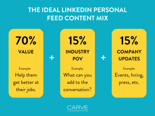 YOUR LINKEDIN FEED = 70% VALUE + 15% INDUSTRY POV + 15% COMPANY UPDATES